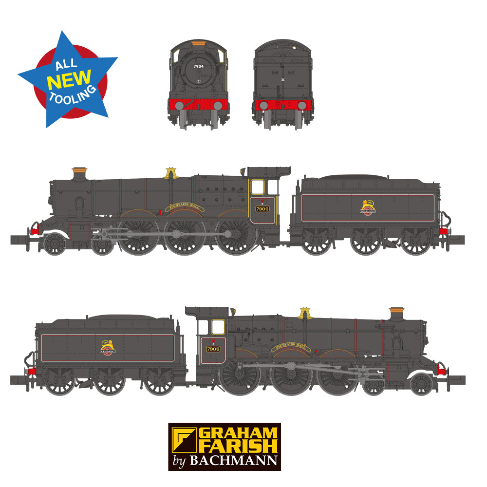 Graham Farish 372-451 N Gauge GWR 'Modified Hall' 7904 Fountains Hall BR Lined Black (Early)