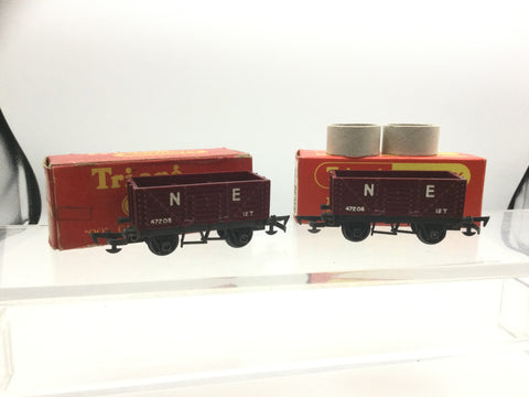 Triang R112 OO Gauge NE Maroon 7 Plank Wagon 47205 x2