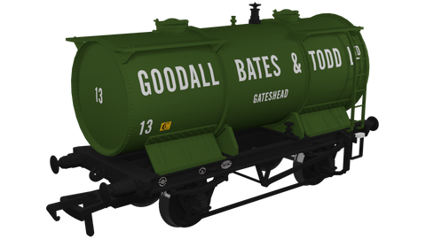 Rapido Trains 981012 OO Gauge Ammonium Nitrate / Chemical Tank Wagon – Goodall, Bates & Todd No.13