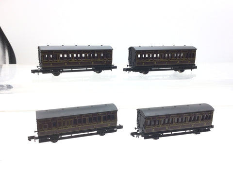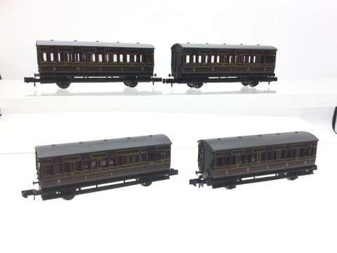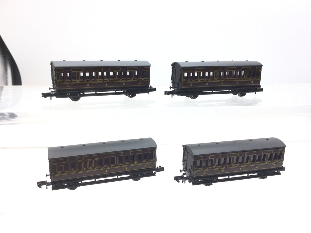 Graham Farish 0661/0671 N Gauge LMS Maroon 4 Wheel Coach x4