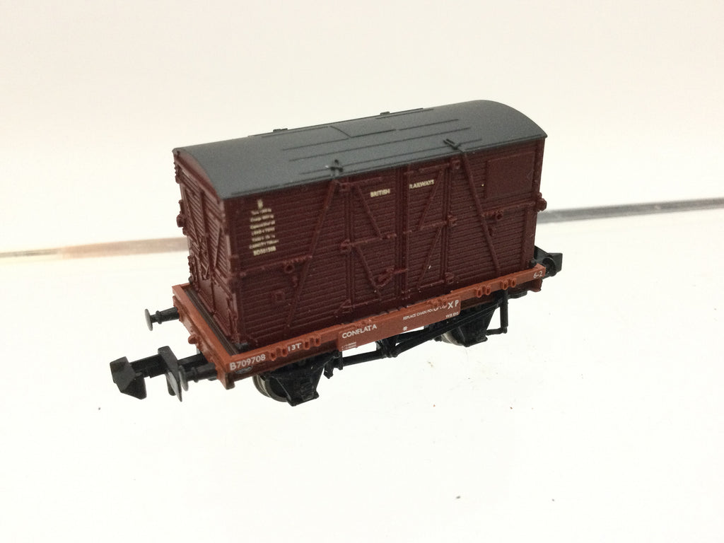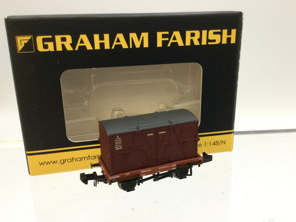 Graham Farish 377-328 N Gauge BR Conflat Wagon w Container B709708